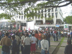 Among the speakers, all of whom where amazingly self-controled in terms of time, where peasant leaders, native leaders, Latino lesbian leaders, and perhaps the highest ranking official of a country was the former president of the Constitutional Assemble from Ecuador Alberto Acosta who announced to the cheers of the audience that the revolutionary process of Ecuador has promised that the "U.S. military base in Manta will be dismantled in 2009."