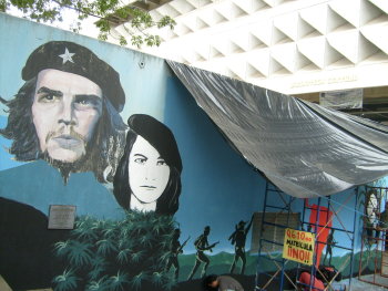 Walking through the extense areas of the San Carlos University Campus and judging by the murals and the writings on the walls, one could hardly believe that Guatemala is a country dominated by capitalism. The images of Che and also of some Guatemalan guerrilla and student leaders killed by various Guatemalan governments are everywhere. In fact the main plaza is called the "Plaza of the Martyrs."