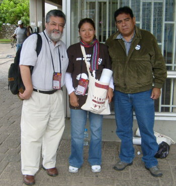 NEWSSocial Forum of the Americas: The work for the delegates has begunGuatemala, October 8.- The day of work at the Forum begun and activists started the process of finding the location for the workshops, presentations and activities of interest. I attended the presentation entitled, "No wall in the U.S./Mexico border" offered by the Southwest Worker Union and the Indigenous Environmental Network from the U.S. The audience built up to a succesful size and lasted -- like all presentations here -- 2 hours. The dissertation part of the presentation took about 1 hour and 45 minutes, leaving little time for opiniones, comments, or questions. A good lesson to learn. I was lucky to be able to announce our "strategies" workshop for tomorrow morning and many people, including the ones at the podium, agreed with the concept that we already know the situation, and now need to concentrate in finding solutions.